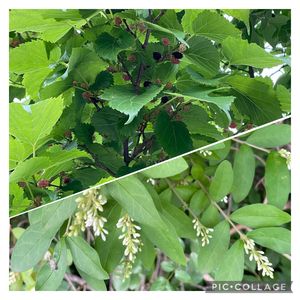 左 カシワバアジサイ 2年ぶりの開花 右上 イボタノキの花 一房残っていてくれた。 右下 ストレプトカーパス