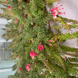 グレビレア ラニゲラ❣️ 肉厚のシルバーグリーンの葉が特徴、赤いお花が綺麗です🥰💕