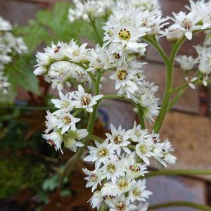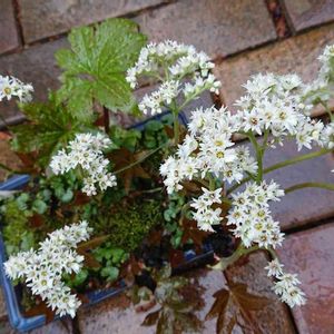母の山野草棚から😺 タンチョウソウ(別名イワヤツデ)咲きました🌼 花の真ん中(頂)が赤くて、丹頂鶴に似てるのが名前の由来🌼 とっても強くてずぼらな私でもお世話出来てマス😺 ただ今年はお花が少なくて💦 もぅ何十年も植えっぱなしなので、仕方ないかな😽 母に「植え替える?」と今確認しましたが、苔も入っていい感じなのでそのままにとの仰せデス😹