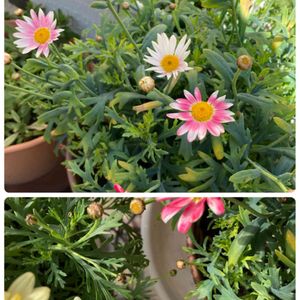 PW マーガレット 今年の3/12に植え付けて 2ヶ月位 たちました🌼モリモリです💕 もう 3鉢 一緒に 撮すのは 大変ですね‼️ 嬉しい悲鳴🎶