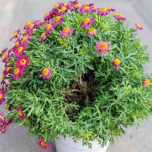 PWアンバサダー(秋)のマーガレット マルスレッド😭 届いた時からまんまるで可愛いお花も咲き順調だったのに、昨日強風で棚から落下しごっそり折れてしまいました😱😱😱マーガレットさん、PWさん、私の不注意でごめんなさい😭💦ショックで立ち直れないです😭😭😭