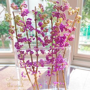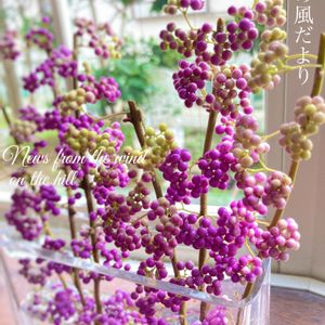 丘の風だより🌿 ムラサキシキブの葉っぱの色が悪くなってきたので、むしり取って実だけにして、花瓶に挿してみました😊 秋の木立風🍁