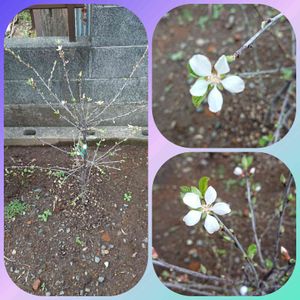 我が家の鉢植え「庭梅」が満開になりました。 お向かいお宅から、掘って貰ってきました😅 1本だけをと思って掘ったら二股になってた根元🌱。分ける訳にはいかず頂いてきました。 今、満開💮💮💮 お向かいさん👀が残念がっているかとハラハラ💙💦 でも、満開は嬉しくワクワク💓🤭