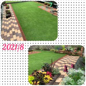 2021年芝生のベストショット レンガ畳もアクセントになって大成功