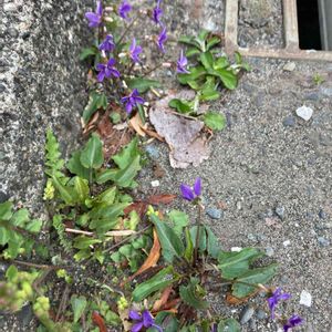 すみれハンター 駅の近くにど根性すみれ が生えていました 何色かな? 春まで抜かれませんように😓