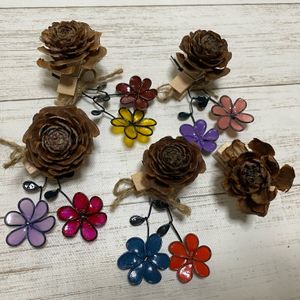 あきさんのシダーローズ、カンタン工作。 百均の木のピンチにグルーガンでくっつける!簡単😁 ニス塗るとさらに良いのだけど、今手元にないので💦 マニキュアのコーティングでもいいとおもいます。 ピンチにシダーローズついただけで、なんだか豪華✨ 100均のワイヤーを曲げて作ったお花をはさんで、紐で吊るしても良いかな? ワイヤーの色付けは同じく百均のガラス絵の具。 単品で、メッセージカード挟んでも可愛いかと(*´艸`)