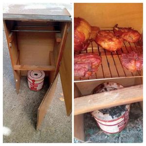 🏷️食いしん坊日記 高温多湿の毎日 久しぶりに燻製作り 練炭コンロが熱源の小さな燻製箱は4代目 シカ イノシシ 魚と色々楽しんで20年程になりました🤗 今回は豚肉と鶏肉 チップは桜 4~6時間途中味見good🍴❤️🍴