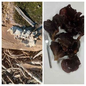 🏷️食いしん坊日記 川散歩♪河川工事で出た直径60cmくらいの榎 白く干からびたキノコ 私の好きな木耳一握りむしってポケットに 昨年はなかったので今年生えたのか 一晩水につけるときれいに広がりました。🤗 大きいサイズは手のひらサイズ 残念ながら少し遅すぎ食べるのには不適 でも次の機会が楽しみ。🤗🍴❤️🍴