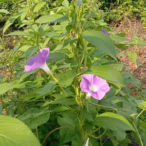 我が家の畑 草茫々 作っていた頃植えたモロヘイヤ 未だに生えて来ます。 そのモロヘイヤを支えにしてアサガオが巻き付いています。 今年はこの色がアチコチで咲いています。 この色は初めて見る色です 植えた覚えの有る色は青と白 何十年のあいだの自家交配でこの色に落ち着いたのかな??🤗