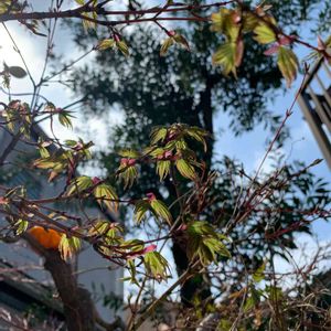 鳥の群れが飛んでるみたいに翼を広げた紅葉の葉っぱ💓 みかんを木にさしてて気が付いいた✨ 昨日は開花宣言もあったし、また忙しくなる予感☺️🌸✨ 2021.3.13🌱