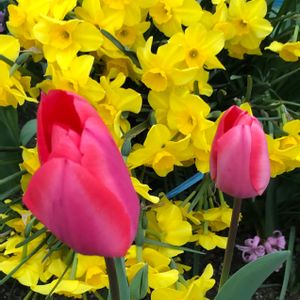 🌼今日のお花、スイセン 赤いチューリップ🌷とのコラボにて💛❤️