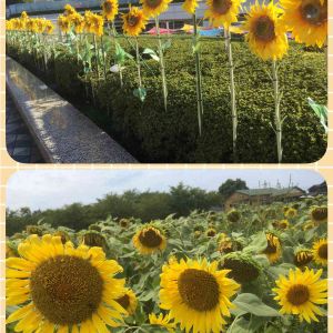 🌻今日のお花、ヒマワリ🌻 ⬆️ 都心の街中に並ぶヒマワリ🌻🌻🌻 ⬇️ 田舎の壮大なヒマワリ園🌻🌻🌻 過去picより〜