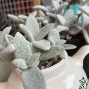 *福兎耳🌱カランコエ属 柔らかい毛で触りたくなる肉厚な葉っぱです🌱🌱 少しづつ増えてきましたョ(*^^*)花芽が出てきたのに咲かずに終わってしまったので今度はお花を見たいです♩ 気温29℃ 晴れ☀️ 午後も頑張ります٩( 'ω' )و