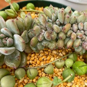 *ダシフィルム🌱とパープルヘイズ🌱 どっちがどっちか分からなくなって💦 小さな白いお花が咲いてます、多分ダシフィルム🌱ですね🤔 気温25℃曇り☁️雨、大粒の雨が降ったり止んだりしています( ´ ▽ ` ) 多肉パト🤍 涼しくてやり易いです❕