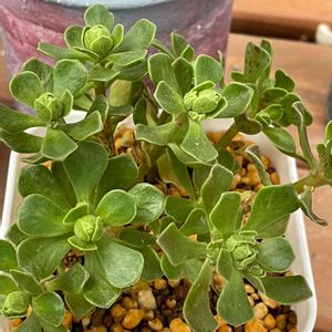 今日はずっと雨ですね☔️気温18℃ タニパトしながら枯葉取り🍂底面給水も、色々観察してました(*-`ω´-)9 最近、お迎えしましたョ💛 チョコチップ🌱(アエオニウム) 可愛い名前ですよね♡ ちょっとだけ葉っぱがベタベタしますね。 きれいなみどり色ですが、夏には休眠するみたいです😌 どんなドット柄になるのか楽しみ❣️