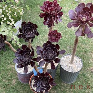 ✲ 黒法師 サンシモン 🌱アエオニウム属 5月の黒法師の日に参加してから今日までこんな感じですょヽ(*´з`*)ノ 少し大きくなりました!回りの葉っぱは少しずつ落ちてしまって、3個の子株だけに。。 こうなるんだね〜(o-´ω`-)ウムウム 今月の黒法師の日に参加出来なかった💦 最高気温27℃ ☁️🔆 暑い( ̄▽ ̄;) カラッとしてますが、紫外線に注意⚠️⚠️ 汗もかくけど長袖着ないと痛いですょ💦 タニパトも早々に切り上げて!!