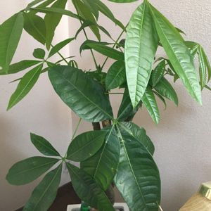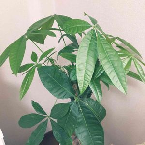 うちのパキラねじりさんです。うちにきて、3ヶ月目です🍀1度寒さで萎れかけ(ほぼ全て葉が落ちました)ましたが、復活して良かったです😂✨