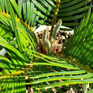 🏷️8日は葉っぱの発表会 蘇鉄① 冬に裸になった2鉢の蘇鉄のうちの1鉢です😁既に葉っぱが沢山の出てたのに暑さが少し落ち着いたからかまた出てきました🌴