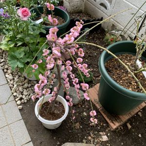 2025.0315(土) 梅祭りで買ったシダレウメが咲きました。 多分クレハシダレです。 ほのかに薫って美しいです。 とっても欲しかったので嬉しいです。 時期が来たら地植えにしようと思っています。