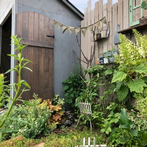 先日の台風で倒れてしまった小さなツール小屋の修復が終わり、やっと元どおりに♬.*゚ 草退治も出来ていないナチュラルガーデンですけど、記念に📷*¨*•.¸¸♪