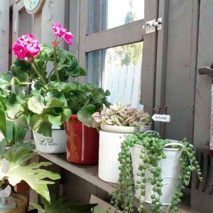 今朝の庭… DIY途中のガーデンシェッドに昨日 14アイアンプレートを付けました😊 去年の秋 次女がフランス🇫🇷のお土産に買ってきてくれた物… 多肉の一部をこちらに避難💦 我家の少しの多肉ちゃんでも大変なのに 沢山の多肉を育ててる方はお世話、お引越しが大変ですね😫