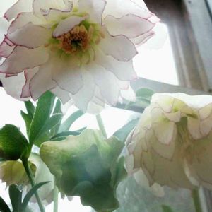 奇跡の一枚ってどう考えたらいいのか悩んでしまったけれど、思い描いたように育ってくれた植物を撮ることができた一瞬を、奇跡と考えることにしました。 シェッドの壁に這わせたバラとクレマチス ドアを開いてお気に入りのステンドグラスと共に写しました。