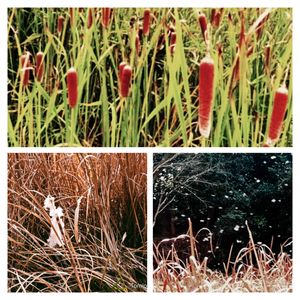 蒲穂の飛散 生花の芯として活用される蒲穂ですが、この時期、子孫繁栄の為、飛散が始まりました。 綿状の種子を風に飛ばしています。