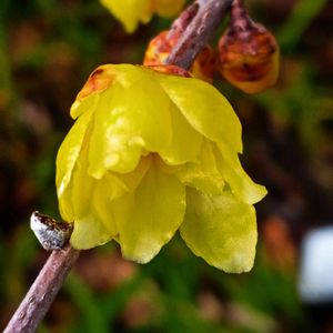 散歩道の蝋梅 散歩道(京都丹波亀岡 南郷公園)脇の民家の蝋梅です。 綺麗に開花していました。