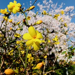 競演 散歩道(京都丹波亀岡 南郷公園)の花の競演です。 ソメイヨシノと黄梅です。