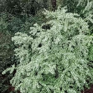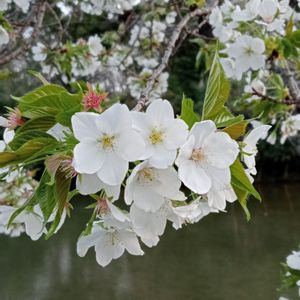 ウワミズザクラ 雨の日の午後、散歩道のウワミズザクラが、、、 2日前の姿と違い、満開に、、、 雨の日の対岸から撮ったので、不鮮明です。