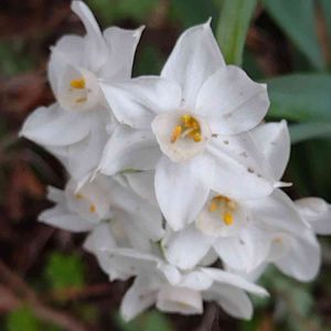 散歩道(京都丹波亀岡 南郷公園)に咲く水仙 一軸に五輪の花が咲く水仙です。
