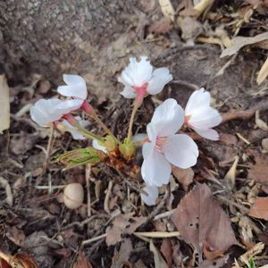 根から顔を覗かせた桜花 散歩道(京都丹波亀岡 南郷公園)の桜の木の根っ子から桜の花が、、、
