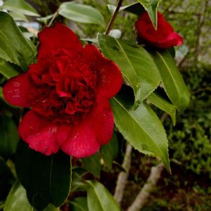 散歩道(京都丹波亀岡 南郷公園)の椿 散歩道に咲いていた椿です。 変わった花型なので、ググって見ました。 紅卜半(ベニボクハン)と言う椿の様です。