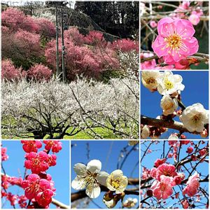 長野市信州新町 ろうかく梅園へ行って来ました💠 紅梅、白梅、ほぼ満開でした ミツバチがブンブン飛んでいて…🐝受粉のためにせっせと働いていました🐝