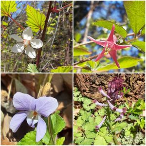 千曲市 大雲寺自然探勝園 鶯の🎶ホーホケキョ🎶聞きながら歩いて来ました🚶♀️ ↖️モミジイチゴ ↗️ヤマウグイスカグラ ↙️スミレ ↘️ムラサキケマン 名前合ってるかな? 30分で歩けるところを1時間かけてゆっくり… コンビニでコーヒーとスイーツ買って、遠足気分☕🍩 楽しかった~💕