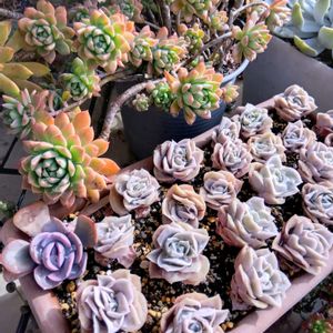 3月になりました。 街の中で自転車を走らせますと、梅の良い香りが漂ってきます。 春を感じます。 今朝の写真は、寒さとおひさまによく当たっているラブリーローズたちになります。 ◇1枚目→現在の様子 ◇2枚目→2ヶ月前の様子(2025年1月1日投稿分) ラブリーローズと共に、すぐ後ろのフェロロボスも大好きな品種のひとつであるため、毎日しゃがんでその姿を見ています🩷 最近、明け方のマイナス気温が続いていたこともあり、どちらもその表情がキュッとかなり引き締まってきました。 毎朝観察しているはずなのに、スライドして2ヶ月前の様子と見比べてみますと、改めて驚きます! ラブリーローズもフェロロボスも、どちらも葉挿し率は抜群です🌱 1ヶ月後には、たくさんの春の葉挿しを開始していきます。