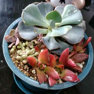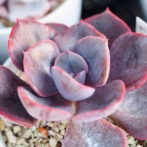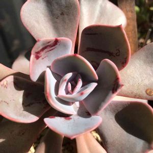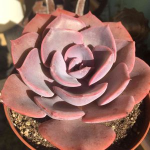 'ダスティローズ'(くすんだ色のバラ) じゃなくて、本当は'ダスキーローズ'かもしれない錦玉園産 交配はフィリスコリス×ディフラクテンスの可能性が示されています jp_beansタグで前回3月の投稿が見れます その頃のムッチリさはどこいった ピンクで可愛かったのに〜 夏姿になると確かにダスティ… 濃い!て感じ 葉姿はエレガントになりますね エケベリアというよりグラプトベリアな印象だなぁ