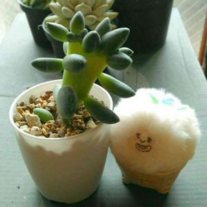 白ボタンの葉挿しが綴化しちゃったっぽい🐙 どうなっていくのかなー😊。