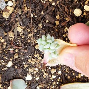 2021.3.13 Sat 0:53 薄氷を見てたら葉挿しが密になってて ひとつひとつ見たら 綴化みたいなのが5苗(*´ ˘ `*)ウフフ♡ 別名 = 姫朧月 薄いピンク色になるので 窓辺にて管理しなくてわʚ🥺ɞ 2020.4.14 HC お迎え🏡 徒長してて ¥328に お値下げ 春から外で管理して 本来の形に戻ったもの 秋以降、茎がスカスカ状態 幼虫にやられたのかな? 形を整えるのに 先週?先々週にモギったけど 小さな芽 もう発芽されちゃった🌱 🏷13日と14日葉挿しの日に参加させて頂きますヾ(●´∇`●)ノ