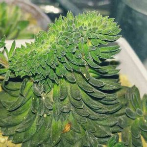 エケベリア属 ダイソーで購入 綴化(?) 葉っぱの間に土めっちゃ入った…