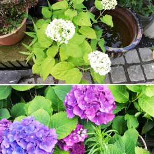 おはようございます😊 上 鉢植えの紫陽花 下 地植えのアジサイ🎵