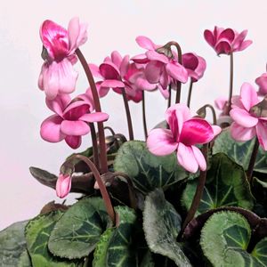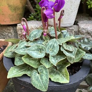 シクラメン 1枚目 ドラゴン 2枚目 原種ヘデリフォリウムこんなに小さいシクラメンがあるんですね 3枚目 ブルー 4枚目 フェアリーピコ 5枚目 寄せ植え