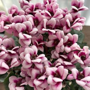 シクラメン フェアリーピコ🌸 はら園芸育成の多花弁の変わり咲きタイプ。パープル系やレッド系等のバイカラー咲き。八重率が非常に高く、花粉が出ないため花の寿命が非常に長い