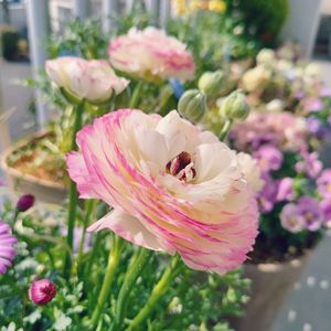 おはようございます☀️ 今朝のベランダ…ラナンキュラス 縁の淡いピンクが可愛くて癒されてます💕 まだ蕾もいっぱい、暫く楽しませてくれそう😊