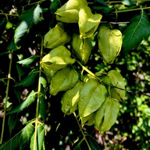 モクゲンジ(木患子) 果実 *ムクロジ科モクゲンジ属 花期は6〜7月 本州日本海側.宮城県.長野県の日当たりの良い場所に生える落葉小高木〜高木! 昨年初めて見たモクゲンジ! 今年は花の時期に間に合わなくて 既に若い果実となっていました! ②中を見ようして少し破けました! まだ青いお豆さんでした♪ ④昨年の花! ⑤昨年の完熟の果実! 硬いので数珠等に利用されます! 名前の由来! 英名は 「golden rain tree(金雨の木)」 ムクロジの中国名(木患子)を音読みした「モクカンシ」が転訛したもの。ムクロジと本種を混同したことに由来するという(諸説あり)。 8月8日撮影 宮城県石巻市 🏷️木曜日は木