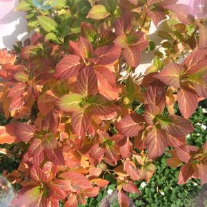ベビー苗からの 3年目のラグランジア *ブライダルシャワー ものすごく綺麗な紅葉🍁です 夏に 剪定し忘れまして💦 巨大化してます