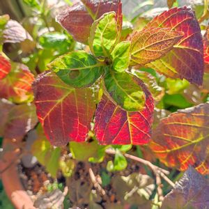 紫陽花舞孔雀の紅葉❣️ 小さいのがまだ残っていました こんな綺麗な色に紅葉してくれました💖