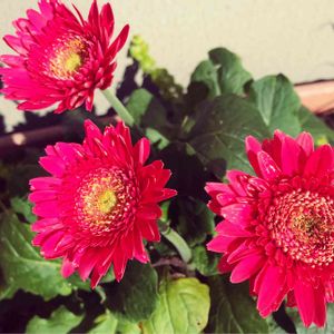 こんにちは😃 今日は日が翳ったり風が吹くと寒いです😨 今年初めに妹からもらったガーベラ🌸 何度か投稿しましたが、少しずつ株が大きくなっています