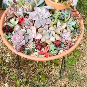 おはようございます☀️.° moguさんオリジナルのセメント🥚鉢へ、 ちまちま寄せ植え❣️ 左奥が、 moguさんオリジナルちまちま寄せ植え❣️ 徒長し始めました💦ごめんなさい🙏