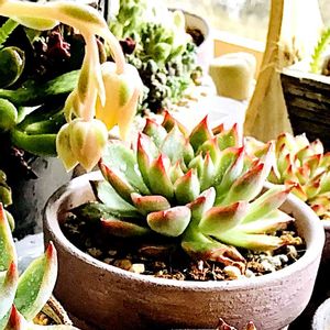 夫が狩っ多肉✨ 🤣俺のメッシ🤣 この子はこれ以上赤くならない?夏顔はどんなだろう🤔 寒いこの時期はホント、皆大きくならないんだね🙀 今成長が見えるのは碧魚連とパープルヘイズくらい、、、 また雪❄の予報💧 早く暖かくならないかなぁ😹